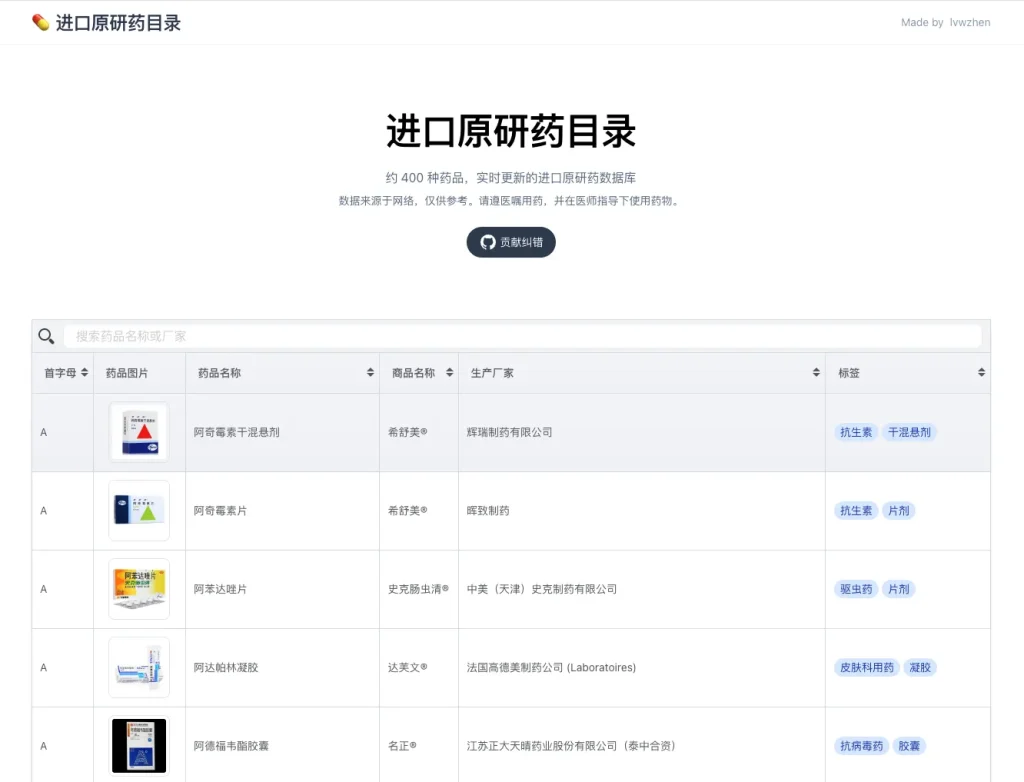 推荐Lvwzhen的在线目录项目:https://medicine.lvwzhen.com/